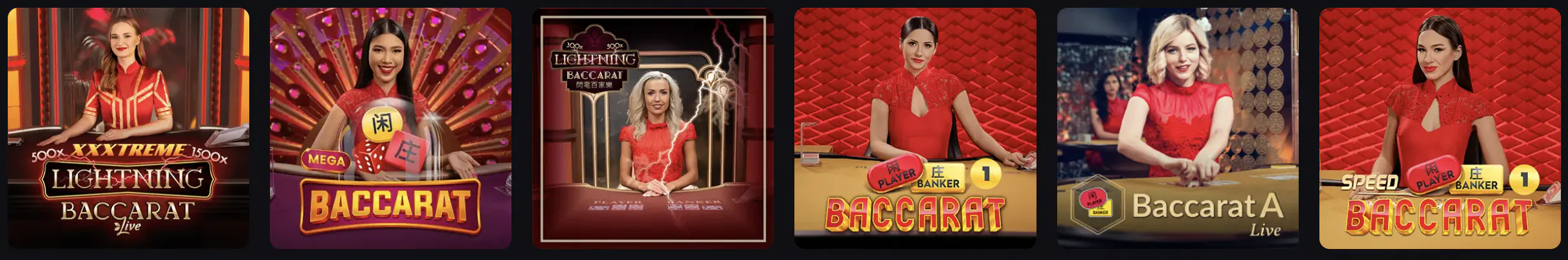 Bakkarat wird in unserem Live-Casino zum Leben erweckt. Wir bieten verschiedene Baccarat-Tische, darunter Speed Baccarat und No Commission Baccarat, an denen Sie auf Spieler, Bankier oder ein Unentschieden setzen können. Die einfachen Regeln machen das Spiel für Anfänger zugänglich, während der niedrige Hausvorteil und Tische mit hohen Limits erfahrene Spieler anziehen, ein rasantes und potenziell lukratives Spiel suchen.